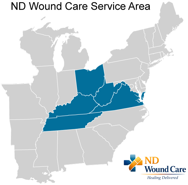 ND Wound Care provides advanced mobile wound care services to patients throughout Kentucky, Ohio, Tennessee, and West Virginia. Our providers travel directly to patients in homes, assisted living communities, and care facilities—bringing expert treatment, convenience, and continuity of care wherever it is needed.
